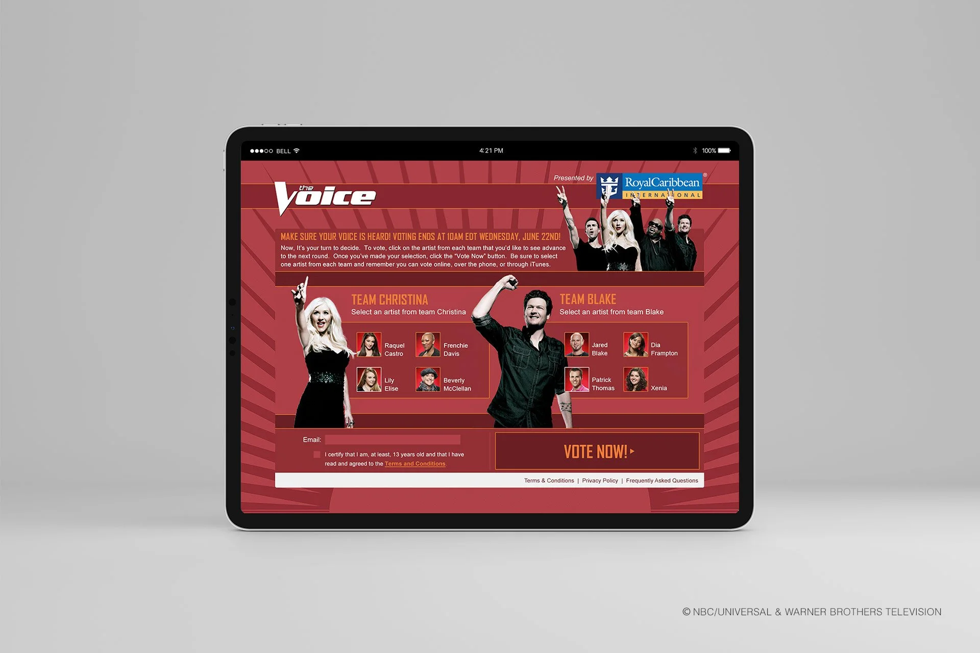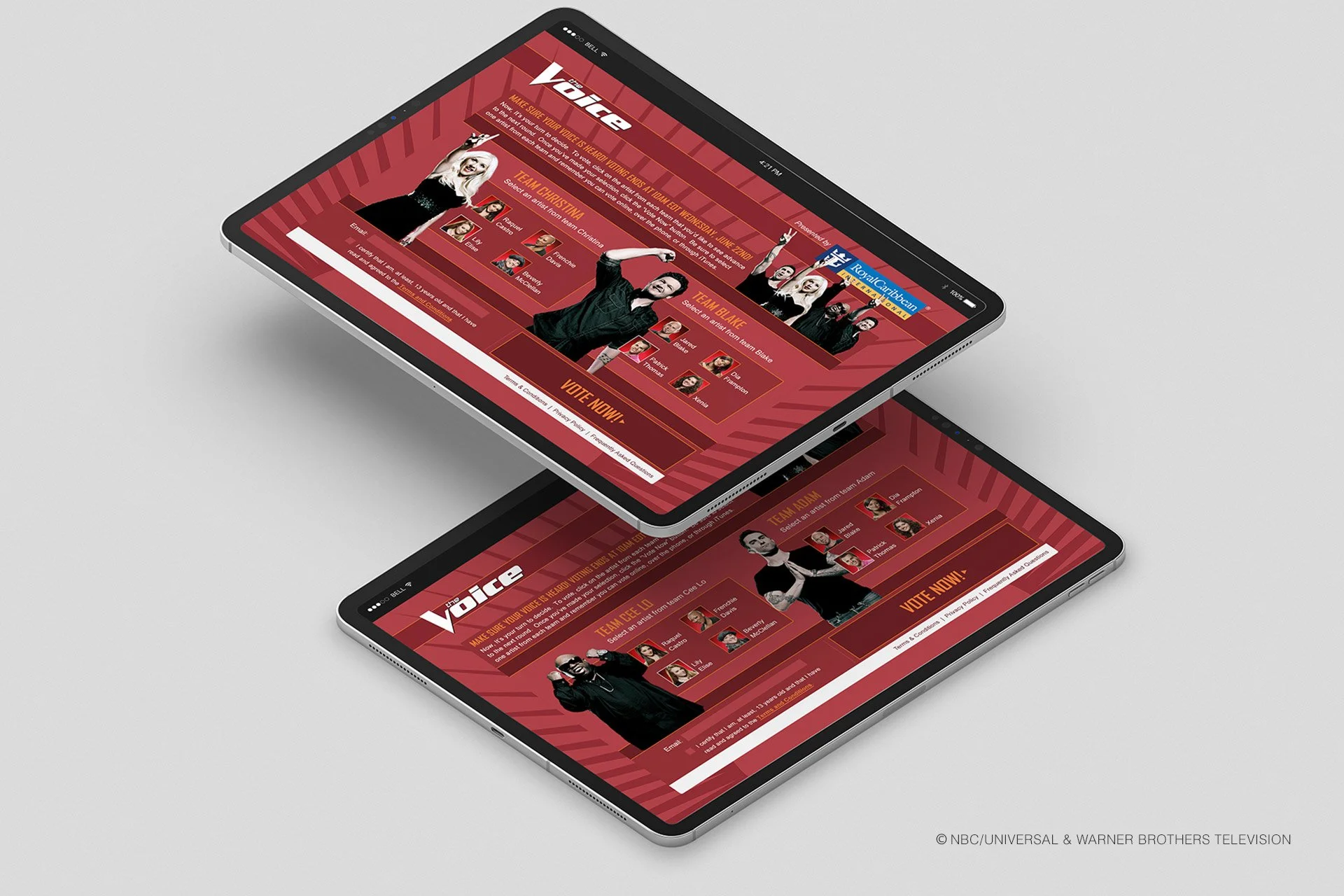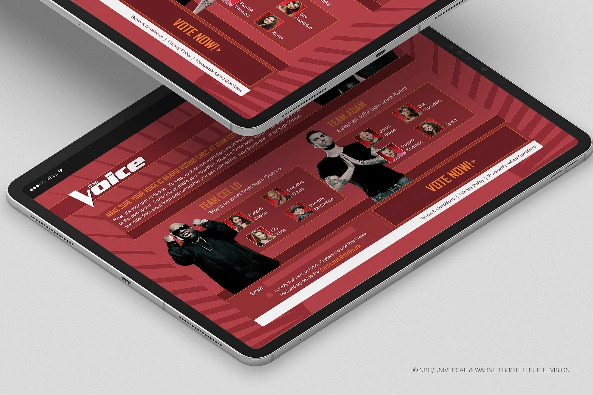 It isn't often that you get the opportunity to be part of a game-changer like The Voice - especially from the beginning. The creative featured includes some retouch work, the app-based interactive voting pages, as well as a number of interactive game screens intended to drive engagement and create a 360 experience that went beyond the content featured on-air. Creative Direction by the NBC Agency
