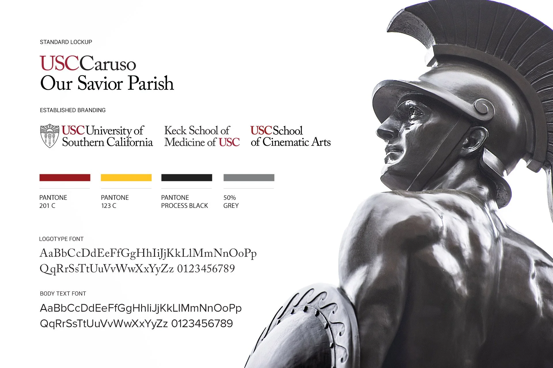 USC’s recent brand-identity update resulted in a simple, yet elegant type presentation that could be easily adapted across their many divisions. This treatment leverages that creative and extends the brand to USC Caruso Center's Our Savior Parish.